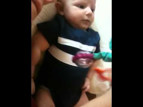 The two month mark has brought about a lot of changes. We are still working on sleeping, and really it isn't too bad. He averages about 4-5 hours at a time, and he naps really well during the day. He likes his baths, except for the drying off part...I'm not sure why he gets upset during this time? Maybe he's cold, maybe he knows he's about to be shipped off to bed? He is also starting to reach out and grab at stuff. It's not super fast, and you can tell he is really having to think about it, but it is so cute! He is in size 1 diapers, but Heath thinks it will be 2's in the near future...I don't think so. He is still wearing 0-3 month clothes, except for Gerber. Those things are SNUG, and short. I bought his first pair of jeans today. He probably won't wear them much just because they aren't great for changing diapers, BUT they will look great for family pictures!